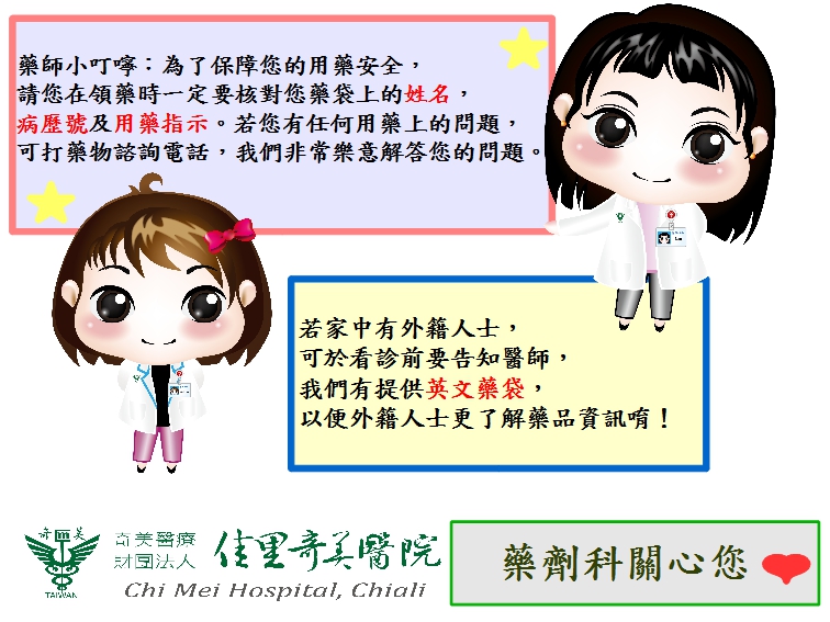 請務必核對您的姓名,確認此份藥物是否為您所有,以免拿錯他人之藥品。
