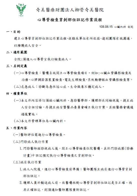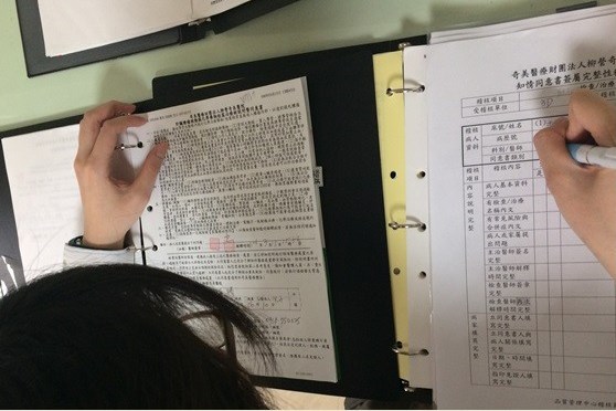 管中心人員,每季至各臨床單位隨機檢視住院中病歷之侵入性檢查治療同意書,稽核同意書內容填寫的完整性(包含主治醫師、檢查醫師及病人資料),針對未完整