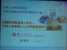 | ►2015年09月25日 「PFM從病人為焦點的評鑑-談提升醫療品質思維與實務研討會」-馬偕紀念醫院張澤芸 |