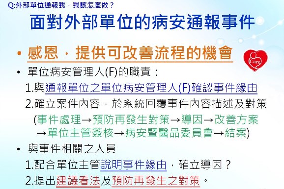 ![]() ►2018年11月20日「病人安全通報與管理」-陳佩葶品質管理員