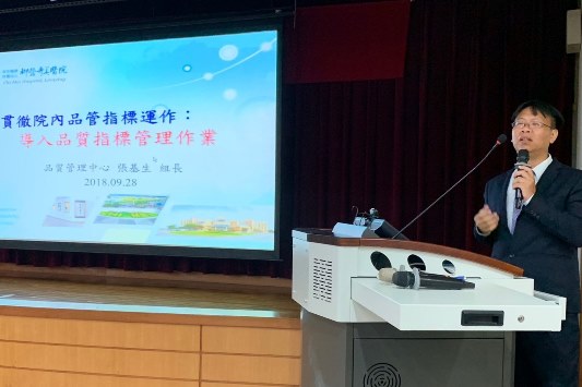►2018年12月19日-院際交流-台灣社區醫院協會「臨床醫病共享之實際案例與成效」專題演講-張基生組長 ►2018年12月12日-院際交流-衛生福利部朴子醫院「跨領團隊資源管理推動經驗分享」 專題演講-張基生組長 ►2018年12月14日醫策會「107年度病人安全週響應活動」-頒獎典禮花絮 ►2018年11月30日台灣醫療品質協會「107年度醫療品質競賽活動」-頒獎典禮花絮 ►2018年11月30日國家生技醫療產業策進會「2018年SNQ國家生技醫療品質獎」-頒獎典禮花絮 ►2018 年11月29日-12月2日2018年(第二屆)台灣醫療科技展 ►2018 年11月25日-院 際交流-台 灣醫院牙醫協會「從 醫院角度輔導牙醫團隊在醫品提升經驗談」專題演講- 張炳欽主任、郭仕斌醫師、陳素梅督導 ►2018年11月16日參與中衛發展中心-「2018全國團結圈競賽」-榮獲「銅塔獎」、「區會長獎」殊榮 ►2018 年11月01日參與台灣醫院協會舉辦「2018台灣健康照護聯合學術研討會」-榮獲「研究風氣優良獎」 ►2018 年10月23日-院際交流-郭 綜合醫院「醫品競賽」評審委員-張基生組長 ►2018 年9月28日-院 際交流-高 雄醫學大學附設醫院「貫徹院內品管指標運作_導入品質指標管理作業」課程講師-張基生組長 ►2018 年9月17日-院 際交流-豐 原醫院「以醫病共享決策提升醫療照護品質」課程講師-張基生組長 ►2018 年8月23日-院 際交流-天 晟醫院「以醫病共享決策推升醫療照護品質」課程講師-張基生組長 ►2018