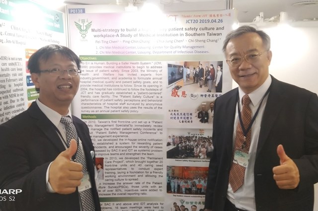 年10月26日「2019HQIC醫療品質競賽活動-主題類主題改善組成果發表」-陳素梅督導、郭仕斌醫師、蘇惠芳專科護理師、張基生組長 ►2019 年10月25日-中正大學資訊管理學系研究生來院參訪、研習。 ►2019 年10月22日-院際交流-澄清醫院「實踐SDM精髓,建構醫護病共享的治療選擇」-張基生組長 ►2019 年10月15日-院際交流-衛生福利部胸腔病院「QCC 工作坊-4」- 陳家容高級專員 ►2019 年10月04日-院際交流-台南新樓醫院「醫 院流程品質管理:如何有效利用品質指標」- 張基生組長 ►2019 年10月03-04日「第十三屆台灣健康照護聯合學術研討會」 ►2019 年9月12日-院際交流-衛生福利部胸腔病院「QCC 工作坊-3」- 陳家容高級專員 ►2019 年9月12日-院際交流-衛生福利部豐原醫院「SDM 工作坊-2」- 張基生組長 ►2019 年8月30日-9月1日-院際交流-浦江國際麻醉與為重病論壇(PIFAC 2019)暨上海交通大學-英國帝國理工學院聯合麻醉年會 ►2019 年8月27日-院際交流-國泰綜合醫院及P4P群組醫院「SDM 創意思維與推動」- 張基生組長 ►2019 年8月23日-院際交流-高雄市立民生醫院「病 人安全通報事件的管理與學習」- 張基生組長 ►2019 年8月22日「2019國際醫病共享決策(SDM)研討會」 ►2019 年8月5日-院際交流-衛生福利部胸腔病院「QCC工作坊-2」- 陳家容高級專員 ►2019