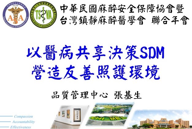 年11月20日「2019醫病共享決策實踐運動頒獎典禮暨大會專題分享」-陳志州副院長、張基生組長 ►2019 年11月15日-院際交流-豐原醫院「2019 醫病共享決策成果發表工作坊暨實踐SDM、展望未來」 專題演講-張基生組長 ►2019 年11月14日-院際交流-童綜合醫院「導入E-TRM溝通平台營造安全照護環境」專題演講- 張基生組長 ►2019