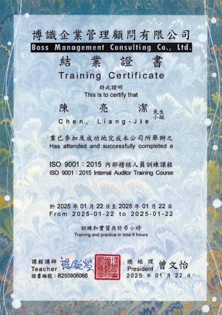 學 歷:長庚科技大學護理系、長榮大學醫務管理學系碩士班(進修中) 經 歷:永康奇美醫院加護病房護理師 -ISO 9001:2015內部稽核人員訓練課程結業證書(B250906066) 諮詢專線:(06)6226999#72707 |