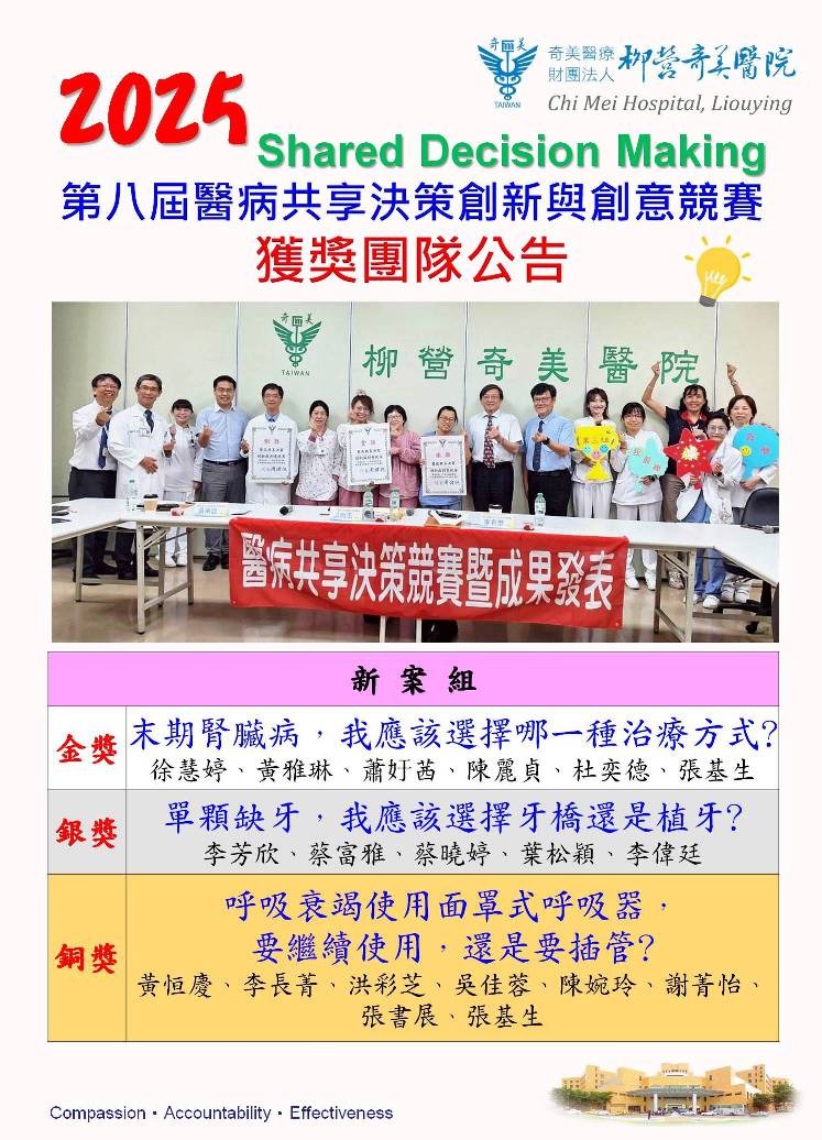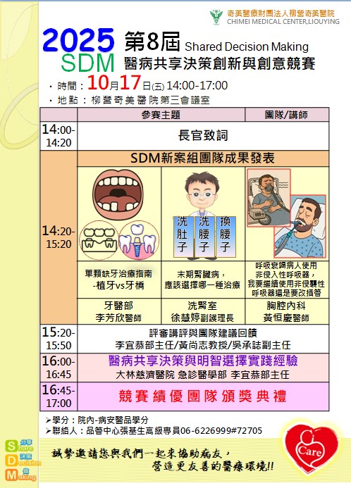 2025年10月17日「第八屆醫病共享決策SDM創新與創意競賽」活動~圓滿成功「獲獎團隊公告」。