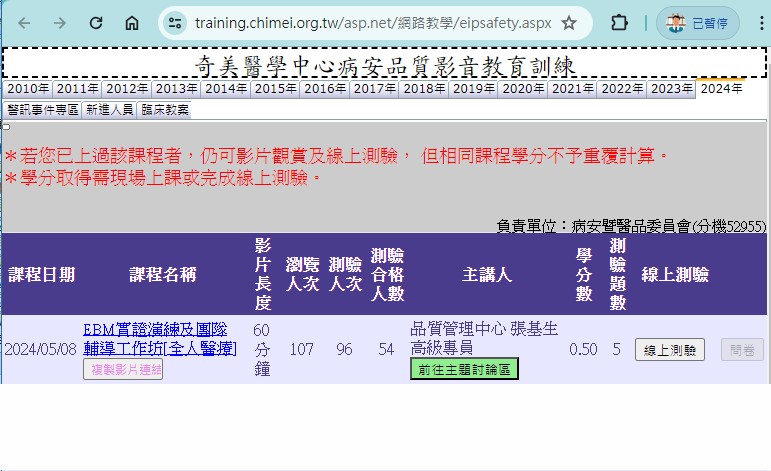 2024年5月8日院內課程「EBM實證演練與團隊輔導工作坊」-張基生高級專員