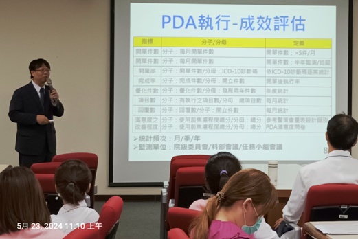 2024年11月13日單位病安管理人會議宣導「SDM醫囑開立獎勵措施」-凃雅婷病安管理師