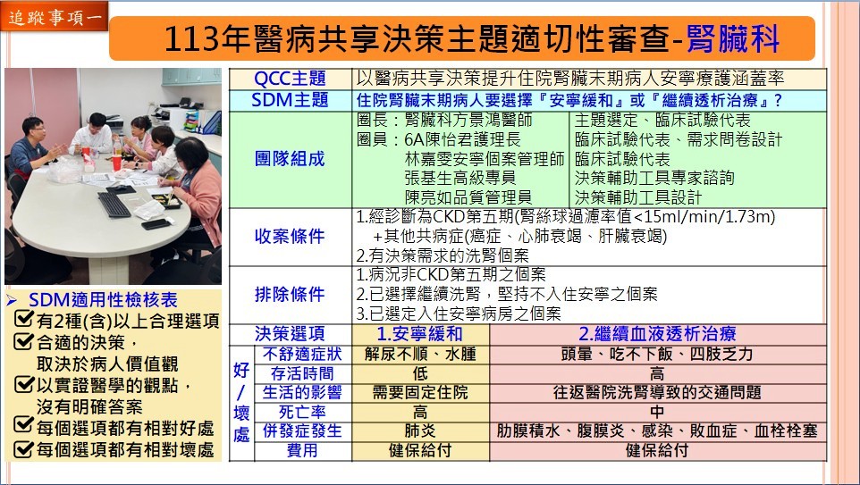 2024年6月18日SDM決策輔助工具「住院腎臟末期病人要選擇『安寧緩和』或『繼續透析治療』?」病安暨醫品委員會/民眾代表-主題適切性審查