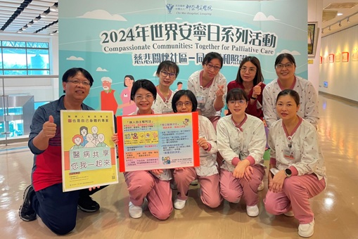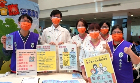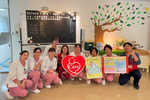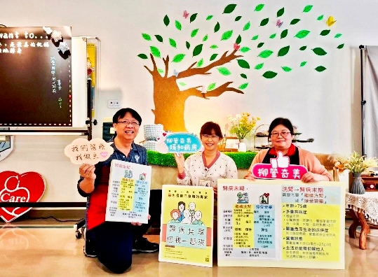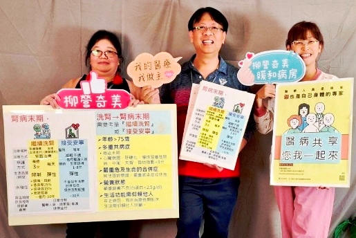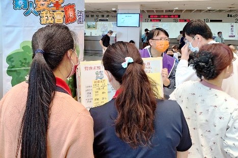2024年10月09日響應世界病安日「醫病共享決策-末期腎病病人的治療選擇、ACP自主權立法宣導」宣導活動-張基生高級專員、陳怡君護理長、韓士禎護理師及洗腎室團隊