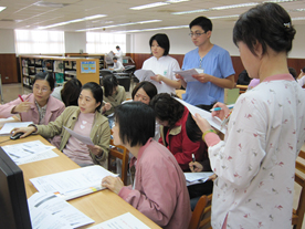 在課程設計中,每堂課都由大種籽親自授課,並於每日課後安排小組討論時間,在課堂中完成指定練習題,目的就在讓學員於課中熟悉每日所學,不須帶功課回家。並藉由小組互動討論過程,刺激大家的思考與學習。為了解決電腦教室太小無法讓大家都上機,我們幫每位學員申請院內網路連線帳號,讓大家可帶自己的筆電,輕鬆地坐在12樓餐廳連上圖書館網站搜尋文獻。