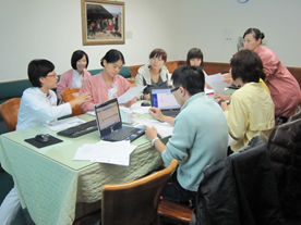 | 嘉琪高師與蕙莉阿長帶領學員進行討論 | 佳憓護師與金盆阿長帶領學員進行討論 |