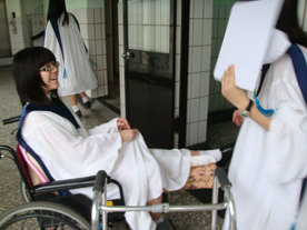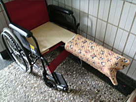 | 喜悅的藍色小天使 | 校護老師設計改造的簡易骨科輪椅 |