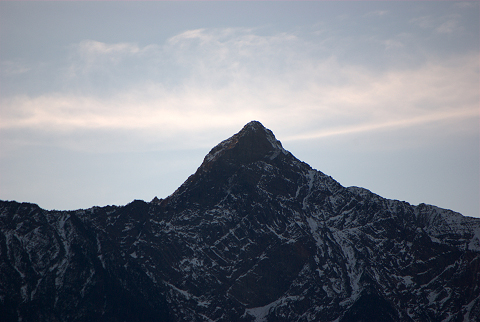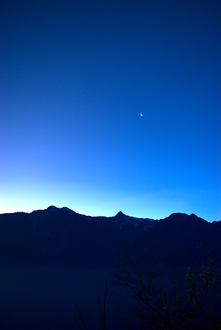 | 天將亮,明月依舊高掛玉山之上 |
