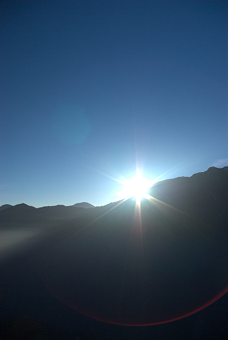 回到朋友的住處,他忽然問我是否要看日出,而我正好沒看過阿里山日出,便一口答應。清晨4點多,被他從被窩中挖起來準備上山。坐上車子,一路往山上前進…咦?怎經過園區大門,卻不進去?朋友看著滿腹疑問的我回答說:「這次去塔塔加看日出!」,「嗄?塔塔加有日出可看?」,不過朋友一副賣關子的樣子,我只好相信了……。