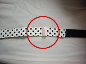 1.2.2 用3秒膠將電線固定夾黏於布條一端近魔鬼氈處,完成輔助帶製作。