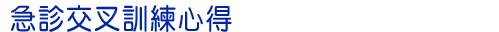 從第一天到急診開始,其實內心就一直忐忑不安,因為除了能感受到急診那種急迫的步調外,另外就是那種莫名給自己的壓力,因為心想自己是一位小組長,但是到了急診感覺就像是被廢了武功般,綁手綁腳的,得聽著輔導員的指示或是教導,一個口令一個動作去執行,其實這樣的感覺很不好受,好像自己是非常渺小的;但是透過輔導員非常有耐心的帶領,並一起分享及同理,漸漸的自己內心慢慢的釋懷,告訴自己不再胡思亂想,並且開始將這次訓練計畫目標擺在前頭,透過與輔導員的溝通,討論出適合的訓練方式,才能通過評核,於是自己也逐漸熟悉急診環境及工作內容,也慢慢融入這個急診的團隊,就這樣度過短短五天的急診交叉訓練生活。