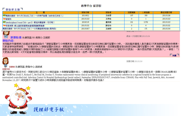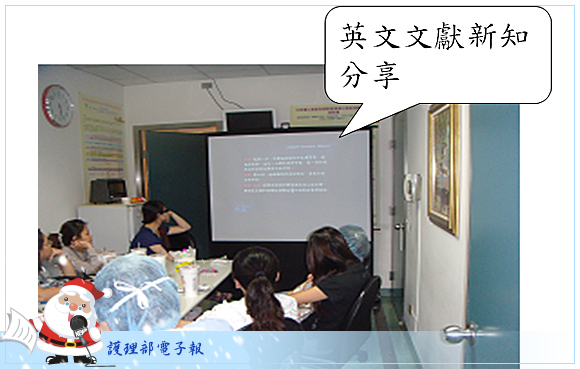 由單位大夜班人員負責,書寫一句英文諺語及單字於護理站白板,在無限制方向或範圍下,人員倒也配合時事發揮,如Failure is the mother of success.我一定要成功,沒得獎沒關係,等待下一次活動我們可以做的更好;Everybody makes mistakes , so that’s why erasers put on pencils.暗喻犯錯也是一種學習,今年度有3位新進人員,請大家多點耐心教導。