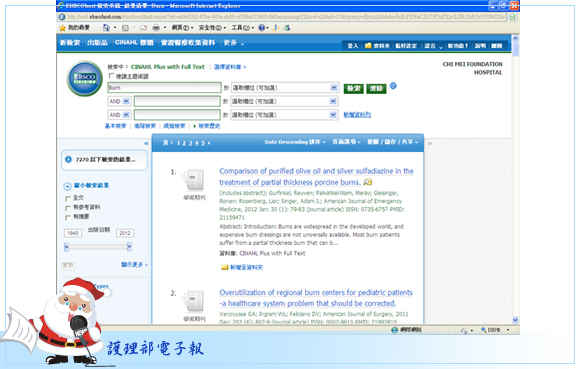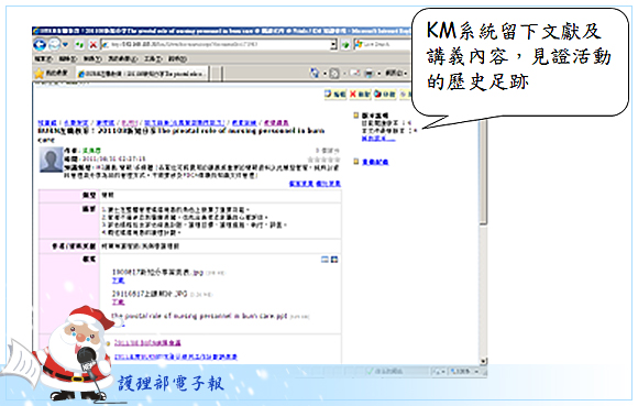 配合變化因此改變計畫,馬上增加單位新知分享在職教育,將主題界定在使用院內CINAHL資料庫,搜尋五年內燙傷相關英文文獻,由人員分組負責翻譯,以增加人員英文能力並充實新知;課後將此份文獻及資料內容儲存在單位KM系統內,方便人員後續查閱