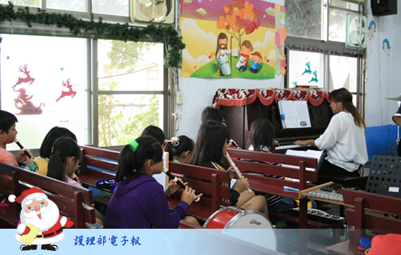 到了假日,孩子們不用上課輔班,為了讓孩子們能有個比網咖更好的去處,也為了讓孩子們能培養一個能帶著走的才藝,師母也為孩子們請了才藝老師,成立了一個樂團~傳愛兒童樂團,規定孩子們在每週六的上午都要來教會團練,也練就一身的才藝。而我那可愛的國中同學就是這個樂團的音樂老師,也是心路樂團的指導老師,每週六要起個大早,從高雄開車到水上,陪孩子們練習。