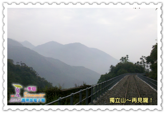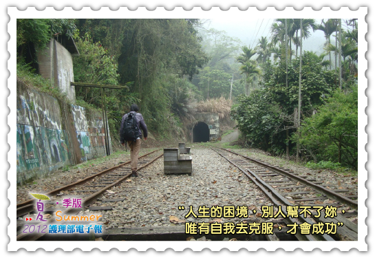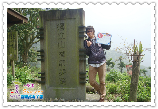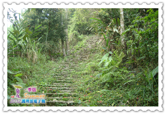 “還記得,第二個月時,工作上的不順遂,讓我感覺自己很危險,恐無法通過評核,就像這坡道一樣,需要步步為營” 有時候,一個人滿身大汗,走在山中小徑,沒有旁騖的干擾,也是一種享受呢!只是身旁蟲多了點,我很像水牛一樣,一直揮手趕蟲子!!!爬到最後,我只能說,樓梯真的很多很多!!“臨床工作,就像這些樓梯,一直向你挑戰,只要撐過去,就會是你的”