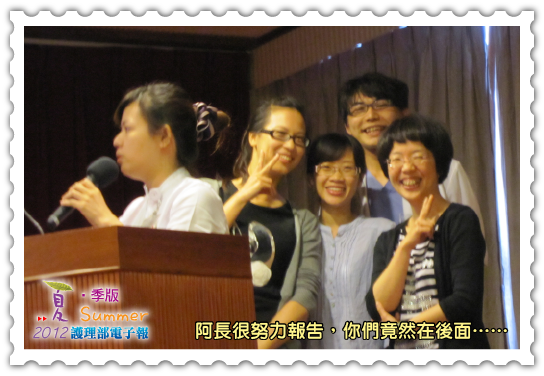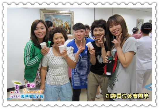 - 第一名:ND陳明惠護師、簡采鳳護師、許麗玲護師、黃素雅護師、張義銘醫師。