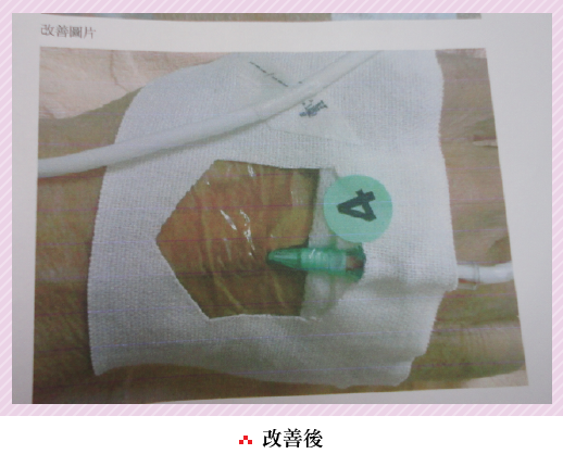 - 『躁動病患留置針固定黏貼創新』運用於躁動或無法配合之病人,可有效降低留置針滑脫機率,並減少成本花費。
