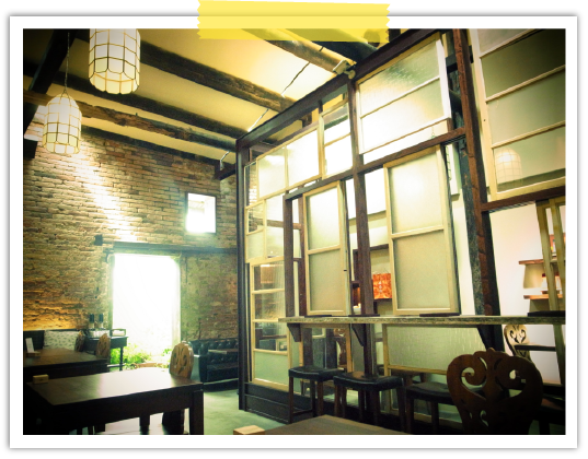 隔天仍帶著我的好朋友尋覓到一般住家旁有一間懷舊建築的咖啡店,若不仔細留意,還很容易被忽略的老房子,當然經過老屋欣力後,別有一翻古早味風格,店內建構成四面磚牆,以木頭橫樑交錯成天花板,以舊窗戶區隔成間,擺設一些文創商品,在這吃早餐,我都覺得自己變成一位女文青了,呵呵~