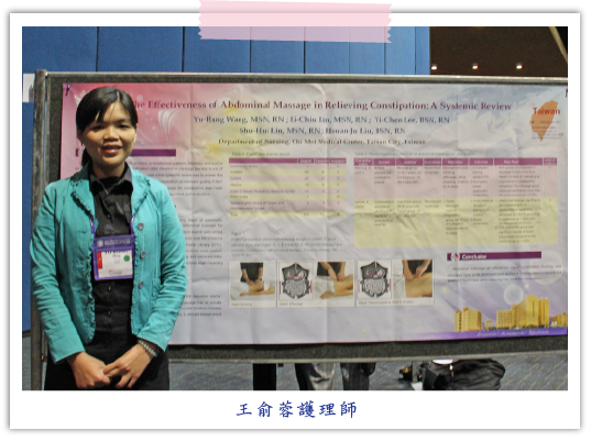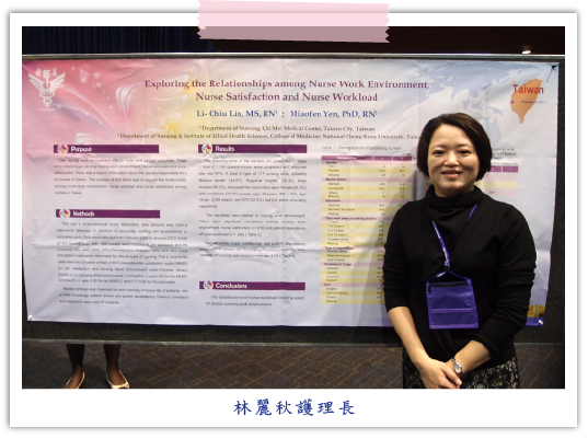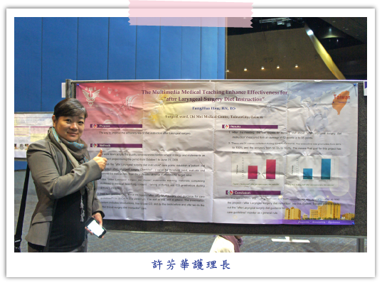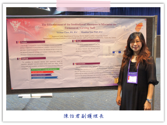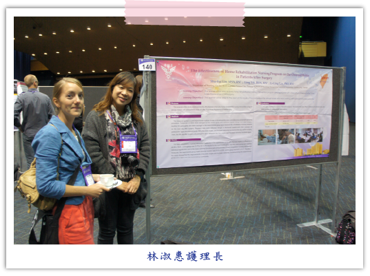 在我們發表過程有相關的專家學者,對我們的研究結果予嘉許外,也對研究內容提供不少建言,讓我們針對研究設計過程與結果分析有更多的參考方向。感謝護理部長官及院方給予我們這麼好的機會,能夠參與本次的國際護理研究大會,除增加我們的國際視野,也能讓我們在與國際護理學者交流過程,增加研究知識之深度及廣度,思考的面向較以往更加不同。