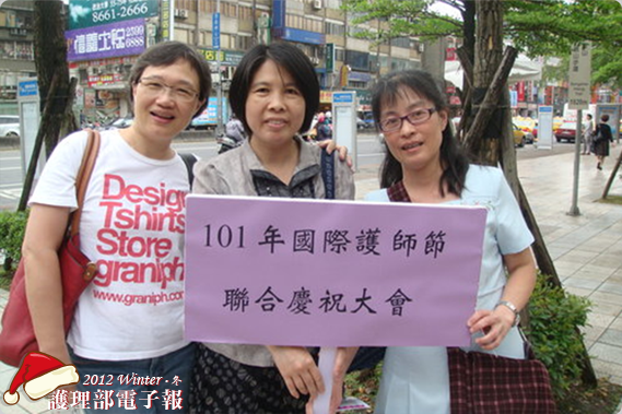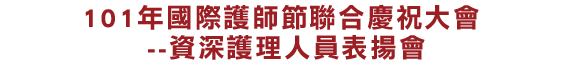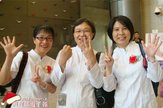 四月接到護理部通知,將參加101年國際護師節聯合慶祝大會,接受二十五年資深護理人員表揚,不知不覺已經從事護理工作二十五個年頭了,驚喜當中不忘問此次活動還有哪些夥伴可結伴同行(因為我是大路癡),結果有精神科苔秀、護理部素雅姐(滿三十年)可一起同行,於是打電話與苔秀聯絡商量一起前去,結果苔秀也是個大路癡,兩人相約壯膽一起出發前征台北去。