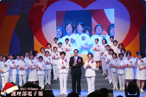 到達會場人很多,江副主任貼心叮嚀找好座位趕緊入座,馬總統將前來觀禮並頒獎。馬總統親臨會場主持點燈儀式,祝福全國白衣天使護師佳節幸福平安,並說明政府改善護理人員勞動條件的具體策略與行動方案,以實踐「尊嚴勞動」的目標。行政院衛生署長邱文達與護理界積極對話,經過逐項探討護理現況及問題後,提出10大策略及60項行動方案,其中重點項目包括:一、減少評鑑、督考及訪查次數與項目,讓護理人員回歸以「病人為中心」的照護;二、訂定工作規範,規範護理人員從事專業工作,其它非專業及雜事交由輔助人員協助;三、調整健保給付的護理費,新增明訂健保護理費給付項目,以彰顯護理的重要性;四、健保護理照護品質獎勵金20億元專款專用,限定用於增加聘用護理人員、固定班別夜班費等;五、將教學醫院新進護理人員於受訓期間的教學費用補助點數由3,000點調整至1萬點,以鼓勵新進人員;六、護理人員工時預計至民國103年回歸到正常工時,讓他們能準時下班;七、積極提升護理人員的薪資待遇及福利,鼓勵醫療院所將護理人員視為最重要資產。