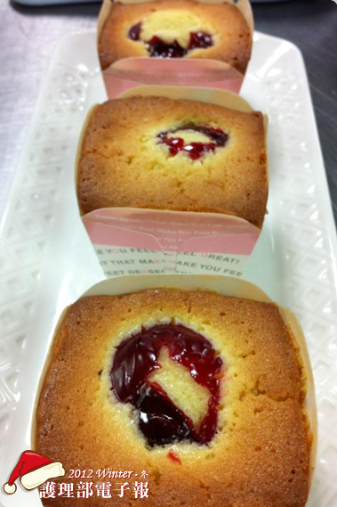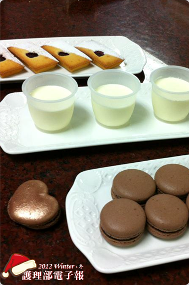 巴黎櫻桃古典蛋糕、法式火烤起司塔、巧克力馬卡龍、費南雪蛋糕等,一成串時尚甜點的專有名詞跳進眼簾,令人好不興奮啊!在親手拿到食譜那一刻,更充滿著期待且緊張的情緒。首先烘培重要的元素不外乎食材、工具、烤箱及烘培環境,不例外的一定要讓我們這些想一舉成功的學生們了解影響成敗的原因,主廚老師認真說明著飯店點心房與一般家用食材原料的不同,叮嚀著日後在家自行製作時的注意事項,也同時教導在同一個原料中變換口味的方法及選擇。讓疾筆寫著備忘錄當下的我,也敬佩起這些師傅們,讓平時小小一個甜點竟可以玩出如此多花樣,也需要用創新的元素與點綴功力,來更豐富這不只是點心的藝術品,不禁也自以為是地覺得,那不就是和我們護理工作充滿創造力是有異曲同工之處了嗎?不小心地,在第一堂課中也得知了馬卡龍為啥昂貴的原因。並不是因為它食材高級,也不是因為它特別稀有,就因為它在烘培擠模時,大小不好拿捏,不易湊成對來夾成一組作品,烘烤也較容易失敗,成本的花費因此提高,卻也直接反應在賣出的價格上,當然最後就是消費者買帳囉!不過,自家私作的點心是不需太在乎大小不一致的問題(不過我心想,如果可以做得像外面賣的那麼美,那就更好囉)!