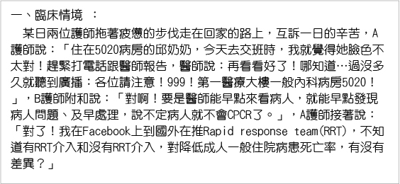 以實證方法探討導入快速反應小組於降低成人一般住院病患死亡率之成效