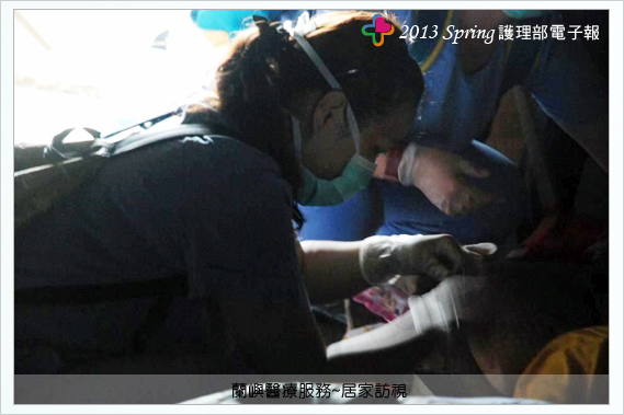 近年來因為醫療大環境的改變,常造成護病關係的緊張及對立,另外工作職場的挫折,讓自己一度想選擇逃離,是什麼支持自己在護理工作中繼續堅持下去,我想除了看到自己帶領的單位學弟妹一個個獨立到壯大,大概就是不定期的參與醫療服務了吧!