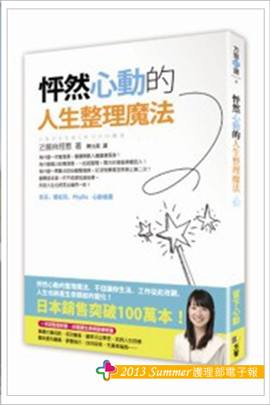 這本書很值得推薦給大家閱讀,也許會讓不同的人有不同的收穫,之後我又買了一些相關的「整理」書籍,裡面都是告訴大家可別小看「整理」,很多實例都證明會讓你人生有不同的改變,護理人員專注於專業的書籍中有時視野會變得很狹隘,若是有時間閱讀一些不同領域的書籍,也是對於拓展自己的想法及心胸的一個好方法。