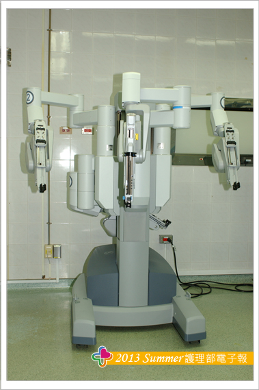 在本院達文西機械手臂手術系統應用於一般外科、婦產科、胸腔外科、泌尿外科、心臟血管外科等領域。對手術室工作人員而言,達文西機械手臂代表著許多好處,例如:機械手臂體積較為輕巧;易於醫護人員在手術環境中架設;手術進行更精準安全,可避免誤傷血管及神經,保護良好組識。