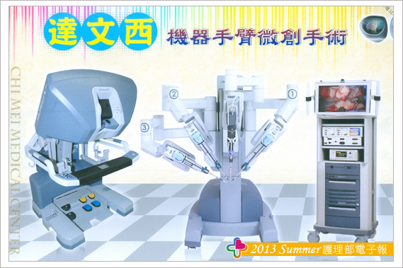 達文西機械手臂手術系統將頂尖的精密遙控機器手臂技術,讓主刀醫師可直接看到三維立體影像,操控仿真手腕手術器械之機器手臂,如同開腹手術一樣自然的操作,於手術輔助儀器中成為外科醫師處理傳統複雜手術的最佳選擇,且能經由比傳統手術更好的影像、更精準、更靈巧地來進行手術提供給病人最好且最精細的治療結果被稱之醫學界變形金剛也是精緻開刀手。達文西機械手臂在神奇的”鑰匙孔”大小的傷口下完成複雜手術,在同樣的手術過程中出血量、術後的疼痛、功能的恢復及美觀上成為小而美的外科新美學。