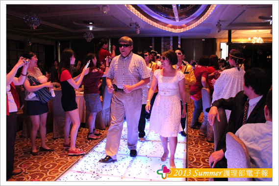 訂於5月8日那天,我們齊聚ㄧ堂,將熱鬧度過屬於白衣天使的節日。所有準備就緒後,就在天使們歡熱進場的同時,隆重的揭開「樂活做起‧幸福轉動」~紮根新希望 傳承耀百年」活動序幕,首先由內、外、婦兒、加護與非住院科系代表隊伍拿出團隊合作的精神與絕佳的創意,在輸人不輸陣的狀況下,合著具震撼力的配樂進場,讓現場的800多名同仁歡呼聲雷動,只見每個人的心跳節律加速上升,場子熱度也隨之上揚,大家對於活動進行的精采度期待不已。