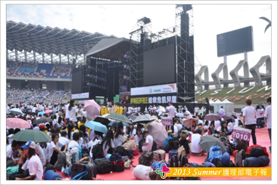 聽到這席話當時我心裡就想,這世界上需要幫助的人真的太多太多,物資的缺乏是一種相當現實的苦,而我們有時少吃一餐或許也不會怎樣,但這樣子省下來的錢說不定就可以救活一個生命呢!對於三頓飽的我們,飢餓一下下或許是可以忍耐的,但是救命卻是一刻也不能等待的,生命真的好脆弱,我想生命的價值不管他生在哪裡都會是一樣的,常聽一位朋友說:「愛可以使旱地變成湧泉,只要我們付出,他們都會因為我們的付出而讓生命多一點的希望」。這一句話從每位來求診的勇士們身上,我有相當的感受,印象深刻的記得,有一位小女孩她被同學扛來救護站時人已昏迷,經一連串處置並轉送高雄海軍醫院,我隨車時問她(此時已清醒),您看起來比姐姐還虛弱(我當時體重45公斤),為何還要來參加,她很虛弱的回答我,她說:「我想要盡自己的一份力量幫助一個生命」。以前我當特別護士隨車時病人或家屬急的都是病人本身的身體狀況,而今在我眼前這位有氣無力的小女孩急的是想要用自己的力量來幫助別人,救一個生命,看到這如果您是我,您會有甚麼心情呢?