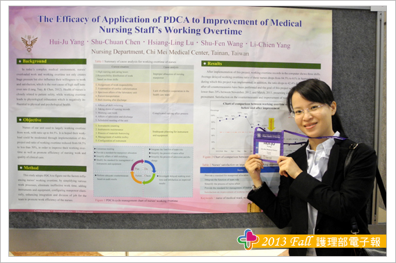 2013年7月22-26日於捷克布拉格舉行第二十四屆國際榮譽學會年會,會議方向著重於護理研究與實務間的交流與銜接,主要有四大目的:1.提供護理臨床工作者、主管與護理教育者間的交流溝通與合作,2.發揚與傳遞優良護理教育觀點,3.護理實務與教育計畫研討,4.評估現有醫療環境,正向發展護理教育目標與策略。大會開幕時,演講主題為邁向老年化的社會與醫療環境,相信此議題無論在台灣或全球醫療環境中,我們共同面對到相同的困境與挑戰,如何運用團隊資源整合,經由研究與實證經驗,增進環境安全與病人健康。聆聽其中二場口頭發表時感觸極深,一場為病人安全主題,內容除了強調團隊合作外,有效降低臨床給藥異常率可銜接學界實習開始,運用EBP技巧,從護生著手,加強給藥觀念與實務操作技巧,利用產學合作回饋學校教育,增加臨床工作正確性與病人安全,擴大觀點來看,無論是護理,甚至醫學生、醫技系學生、呼吸治療系學生…,都可以反思從學校教育銜接臨床實務的觀點,來增進產官學的合作與安全醫療環境。另一場的主題為護理人力留任議題,聆聽講演重點除了提供優質護理職場環境外,醫院管理者需考量護病比外,必須每年依據國家GDP指數,提供合理的薪資與福利,才能有效留任,另外也需要持續營造社會上對護理地位與價值的肯定。由於此議題為國內持續發燒的現象,護理人力荒居高不下,非常巧合的是Sheri講師為與本院簽約的美國楊百翰大學的教授之ㄧ,一開始彼此自我介紹時,Sheri教授馬上熱情的回應我們,告訴我們她不但知道台灣的奇美醫院而且還很喜歡,她表示雖然沒有到過台灣,但因為每年護理學生來院護理實習時,回校後都會開心分享在台灣奇美的點點滴滴,所以對於我們台灣並不陌生,彼此間的距離一下子拉近外,更有他鄉遇故知的親切感,語言上似乎也沒有太大障礙了。