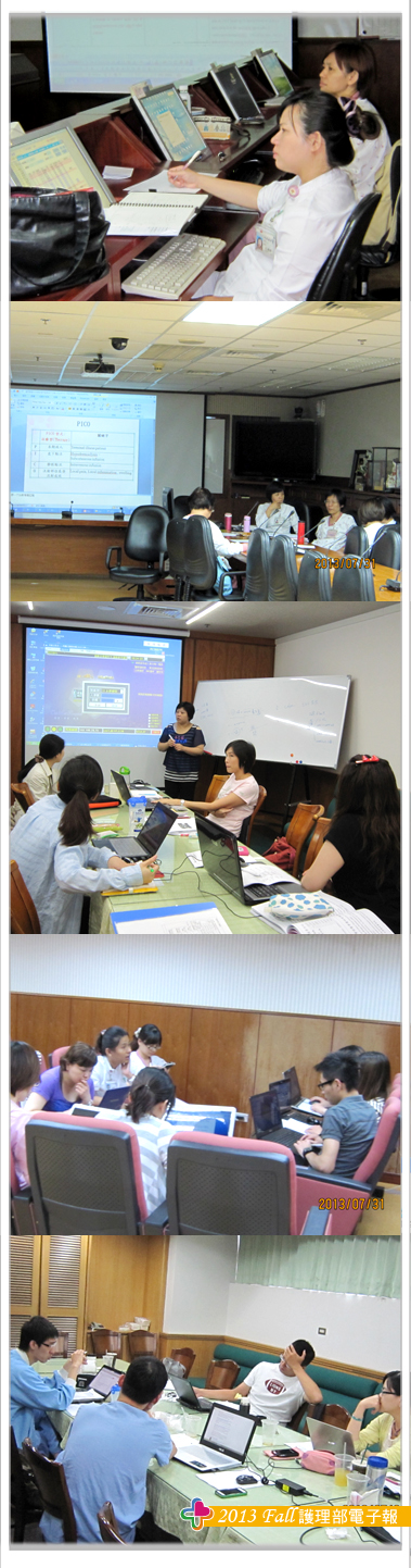 今年的5月份實證護理初階剛進入尾聲,接踵而來的就是進階實證護理課程上場了!進階實證護理的學員可是經過層層關卡才脫穎而出的,首先要完成初階實證護理一系列課程及團隊報告的洗禮後,為了解不同時期受訓初階種子實證護理基礎程度,特別安排了筆試。筆試當天每位參試者戰戰兢兢、卯足全力,電腦、工具書、講義、螢光筆推滿了桌面,二個小時的時間,試場一片寂靜。接著由三位國家級的實證種籽教師閱卷以及委員會會議討論,最後21位學員脫穎而出,順利晉級到進階實證護理訓練中。