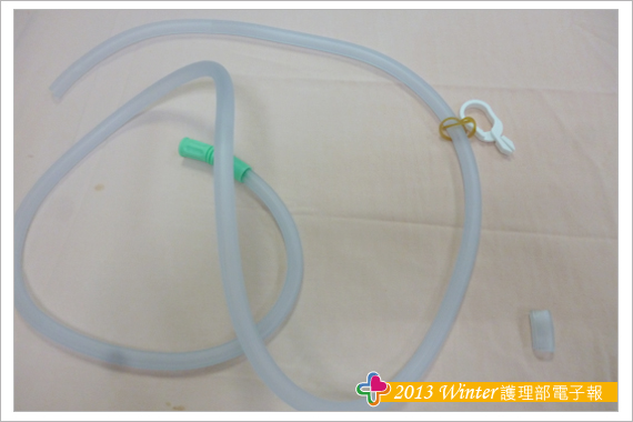 最後突然靈機一動,想說既然要增加厚度和磨擦力,又要不浪費製作時間和金錢,眼前不是就有一個~~那就是外科接管,剪一段約2公分長的外科接管套在Ambu固定架上,如此一來拆裝方便快速,重點是又不用多花任何一毛錢就可以保持Ambu的乾淨,避免"病從Endo入"的情況!如下圖示: