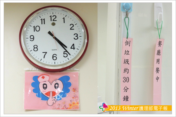 洗腎室-請勿喧嘩牌&工作車上的提醒牌