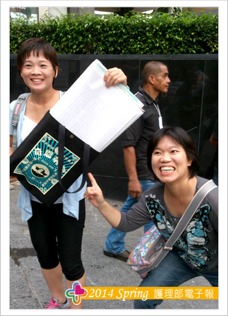 由左至右:作者與陳岳君護理師貼海報前的興奮留影