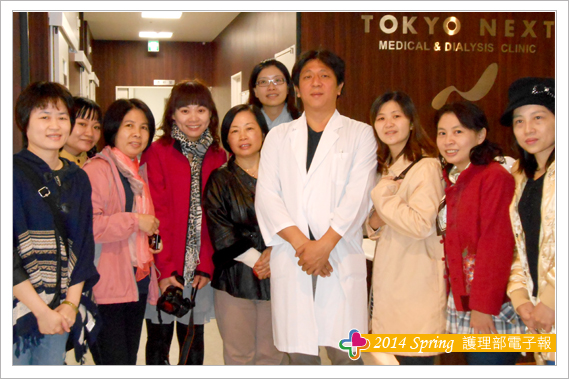 「醫療資訊化」是目前醫療院所改革的方向,此次參訪的東京診也將其醫療資訊化嶄露無遺。陣內彥博院長畢業於台灣的中山醫學院醫學系,在台、日多年的血液透析經驗,深知透析病人的需求及醫療現況,於今年10月東京開業,一踏入診所眾人驚聲連連。哇!完全資訊化,連廢棄物都自動拆剪收集,不僅提高人力的效能,且減少人為的疏漏,讓醫護人員更有效率的照護透析病人,提升血液透析照護品質。