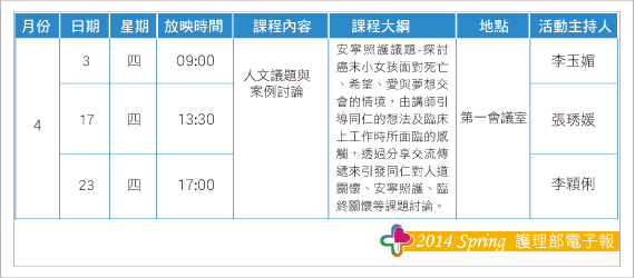 同時,也敲定了3月首播片-「親愛的醫師」。此外,在委員們的 提議下,為了讓輪值三班全院同仁們也能有機會參與,特別規劃了三場不同時段放映日期和時間。