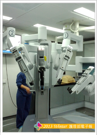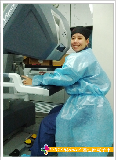 兩年前,剛聽到達文西機械手臂時,一直以為它就像電動玩具一樣,取代醫生的手來進行手術,不認為它與一般腹腔鏡內視鏡手術有何不同。帶著坎坷不安的心情到達香港的訓練中心,我們一起受訓的五個人各自拿著筆和相機不停的寫、不停的拍照,深怕有一項漏掉回來不能交給刀房及專責的同事們,每天都到了晚上8、9點才吃飯,我們每個人在短短3天的受訓中,不停的上課、實作、給機械手臂套無菌套、docking,甚至坐到主控制台操作模擬機,說真的!還真像電動玩具。此外,在香港的醫院受訓的期間,我們也時實際觀察運用達文西機械手臂做攝護腺根除手術過程,及手術後如何洗滌及消毒達文西器械。剛從香港受訓回來的時候學弟妹們問我:「達文西機械手臂到底是甚麼?」,我說:「就是延長醫師手術的壽命,更減少手部微小的顫動,並且在主控制台產生一個3D放大的影像,讓主治醫師舒服的翹二郎腿喝咖啡開刀吧!」。