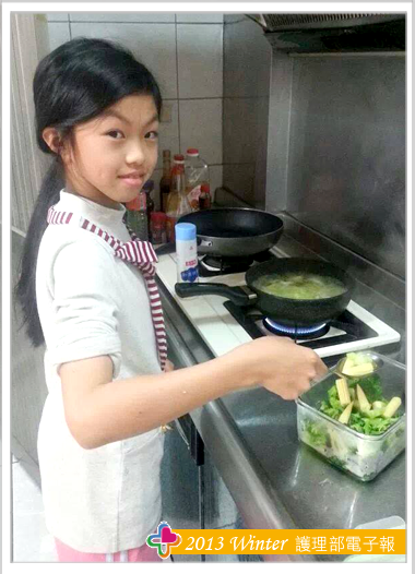 努力一定會有成果!老么大班,日常生活幾乎不需我幫忙,能自動自發寫功課、整理書包並讓我簽名,幫忙整理居家環境、餵食小動物,養成對自己的決定及飼養的動物負責。老大也小四了,烹飪時會主動幫忙,還會要求要下廚,安親班所學的麵疙瘩,在寶貝女兒的指導下,讓不曾嘗試過製作麵食的我,學會煮出方便又好吃的麵食,這實在是受用無窮。不只如此,我還將2個寶貝努力的成果,帶來開刀房與好友們共同分享,同事也都讚不絕口呢!