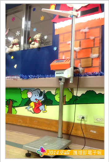 圖八、嬰幼兒電子磅秤 申購新型嬰幼兒電子磅秤,其台面平穩且可有效迅速測量,且同時可測量身高,深得家屬及單位同仁讚許。 |