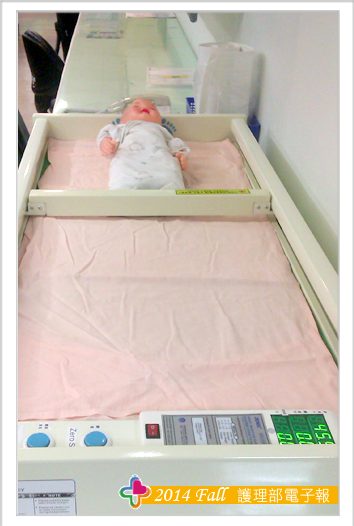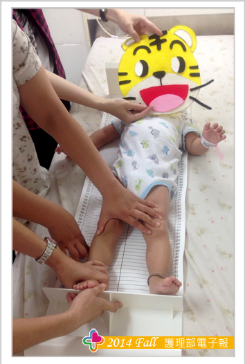 圖三、軟板式嬰幼兒身高尺 以成本效益為優先考量,採購軟板式嬰幼兒身高尺,輕巧易攜帶,可放置病床上直接測量,既簡便又快速。 |