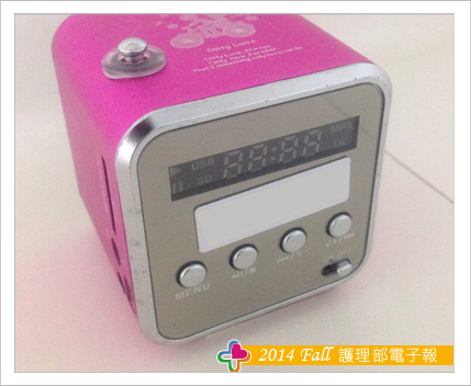 圖六、輕音樂播放於治療室內,除晚間22:00~08:00暫停輕音樂播放外,隨時以40~60分貝之音量撥放。 |